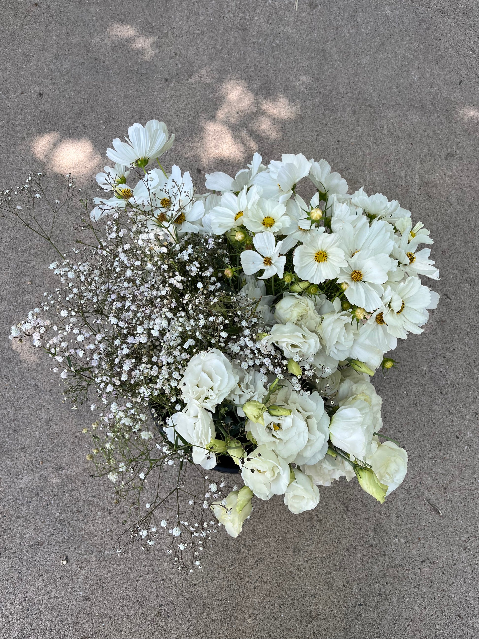 One bucket of seasonal flowers. Buckets will have 40-60 stems. Included in your bucket will be an assortment of white flowers. Pictures include examples of possible inclusions. Because this is a fresh mix of whatever is in season, flower types are not guaranteed. Bulk Buckets to be picked up in the Clara Joyce Farm Studio (follow signage and look for red door).
