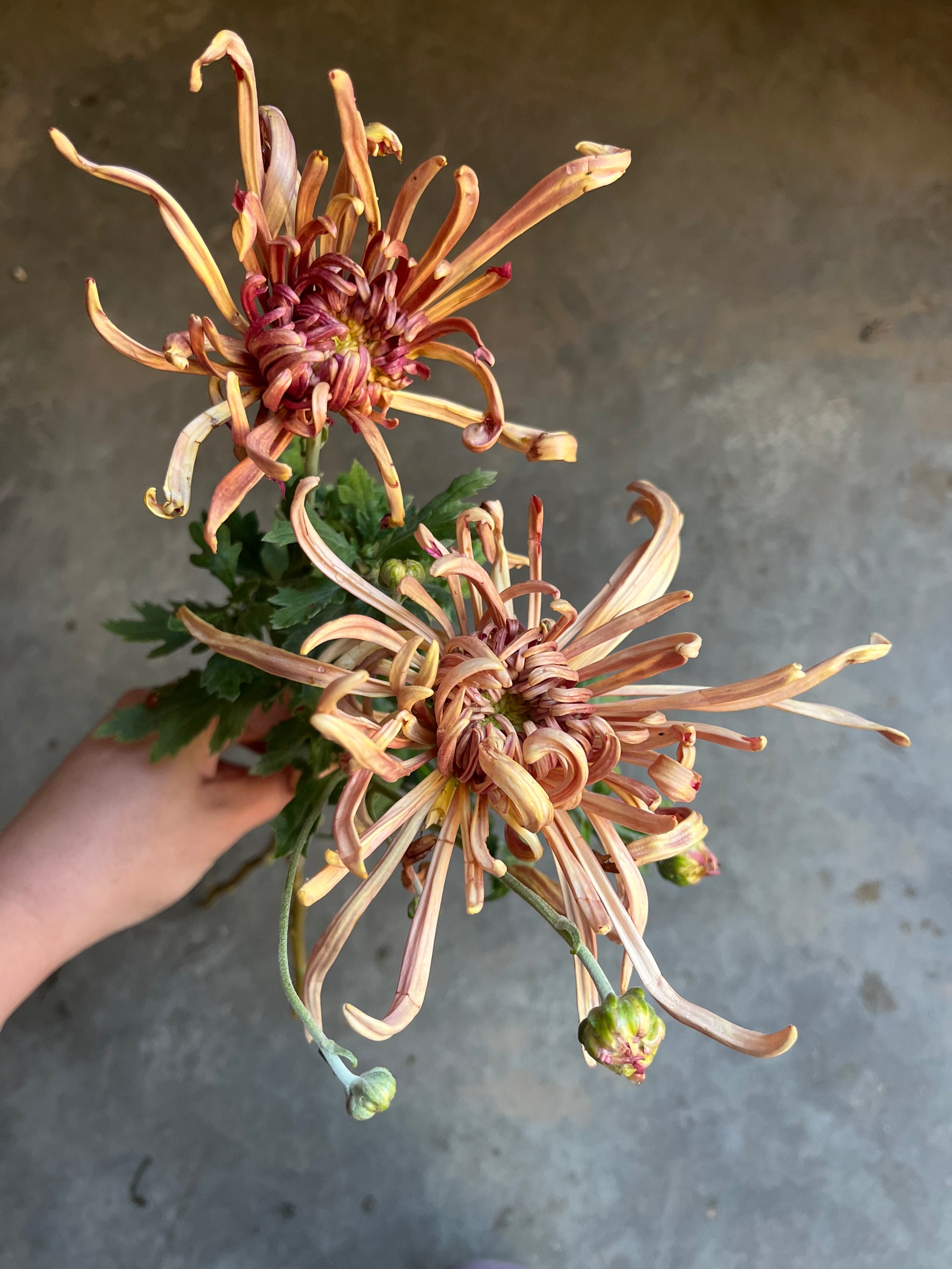 A very fun muddy terracotta color range on this one! Thinner dainty stems.